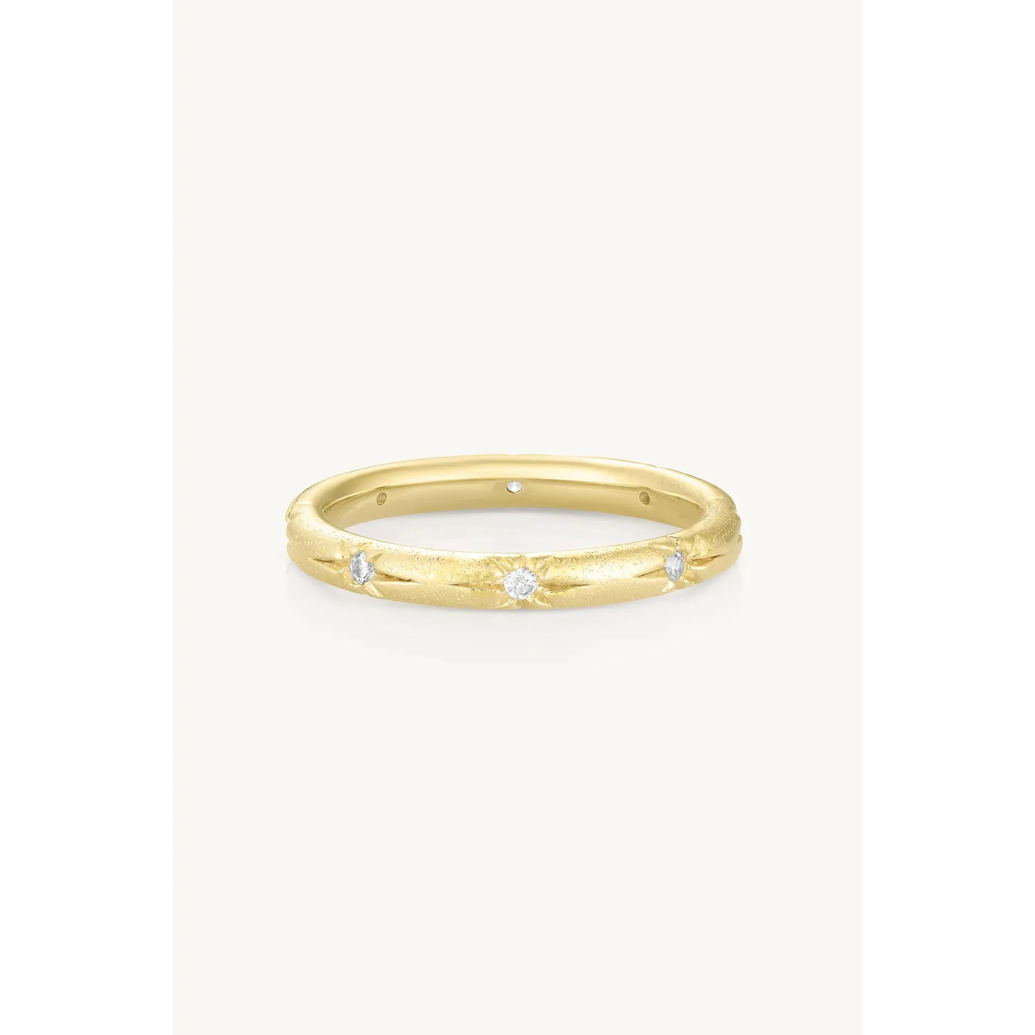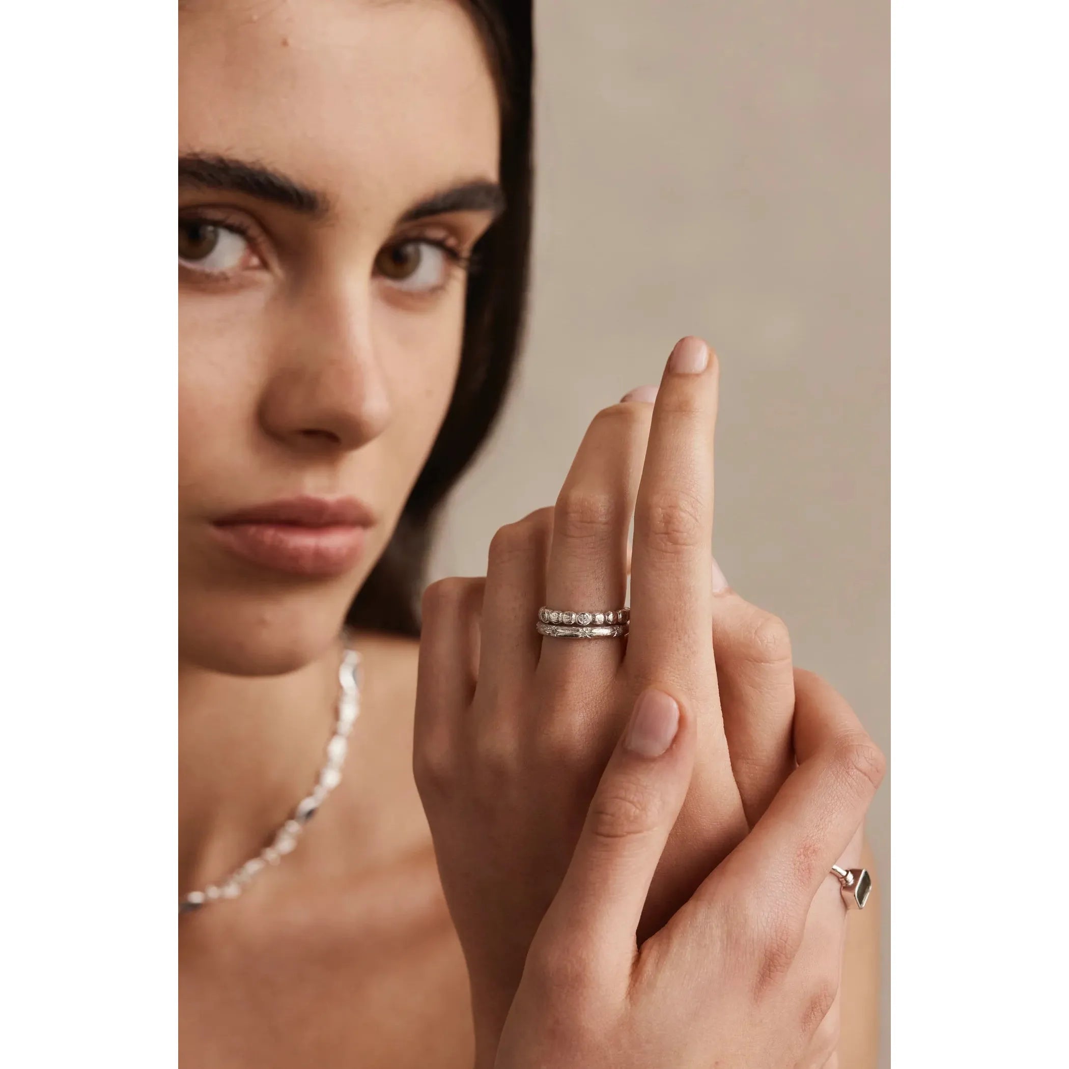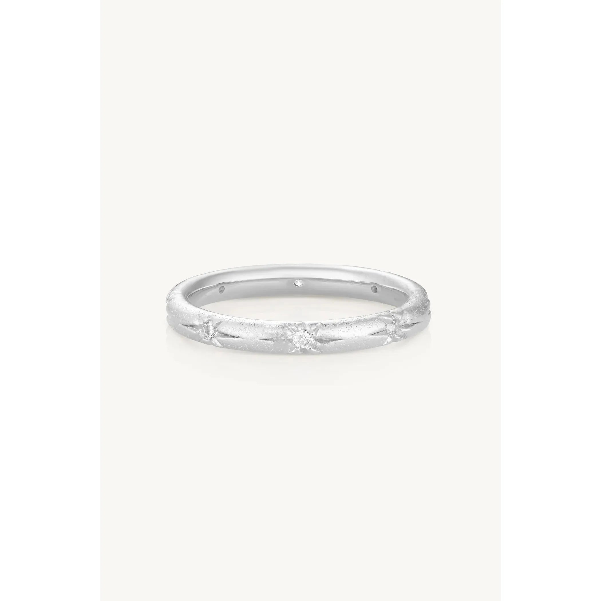 The Starburst Stacking Band features starbursts etched around the full diameter, each set with a glimmering Cubic Zirconia at its heart. Designed to mix, match, and layer with your favourites from our stacking range - wear it solo for subtle sparkle or build your dream stack around it