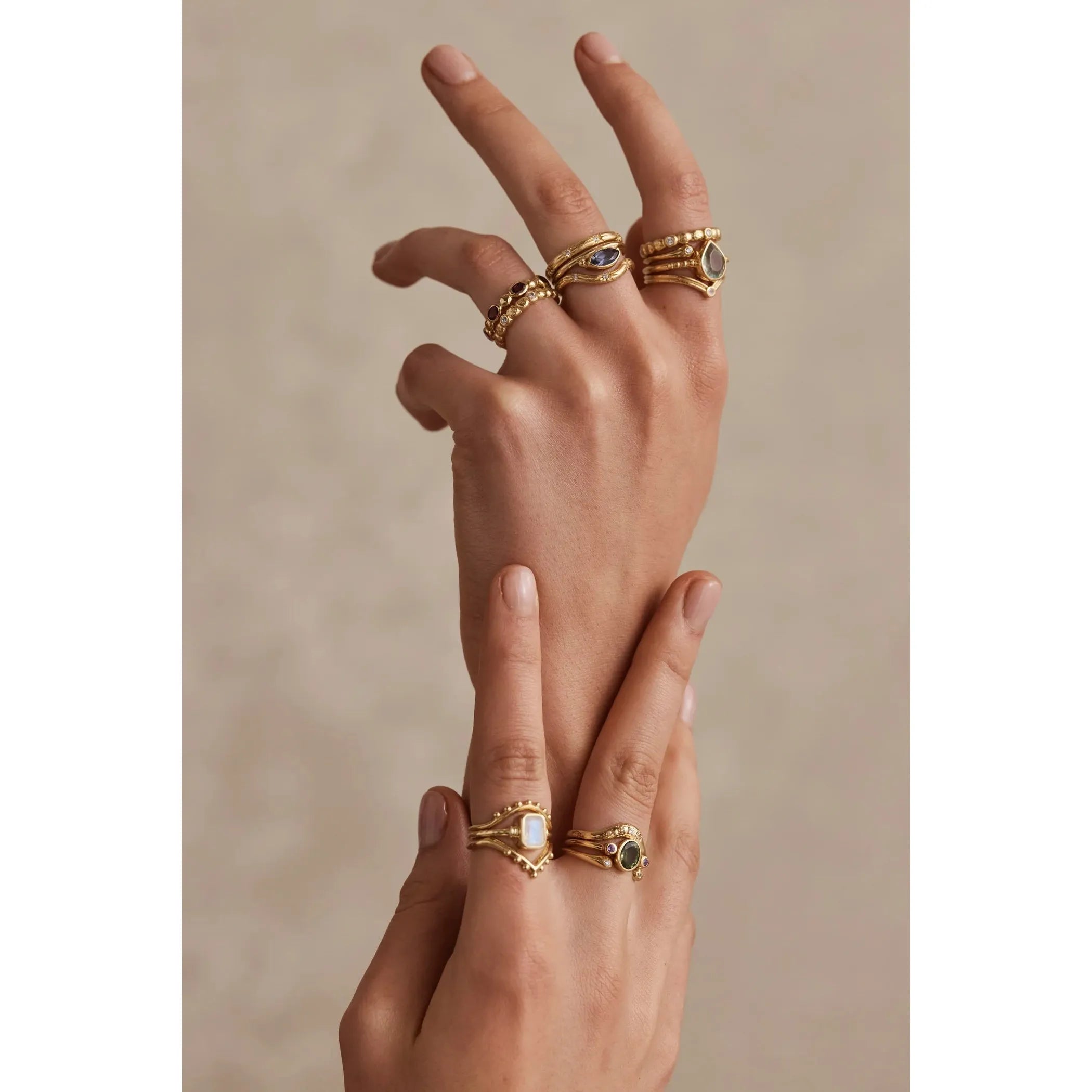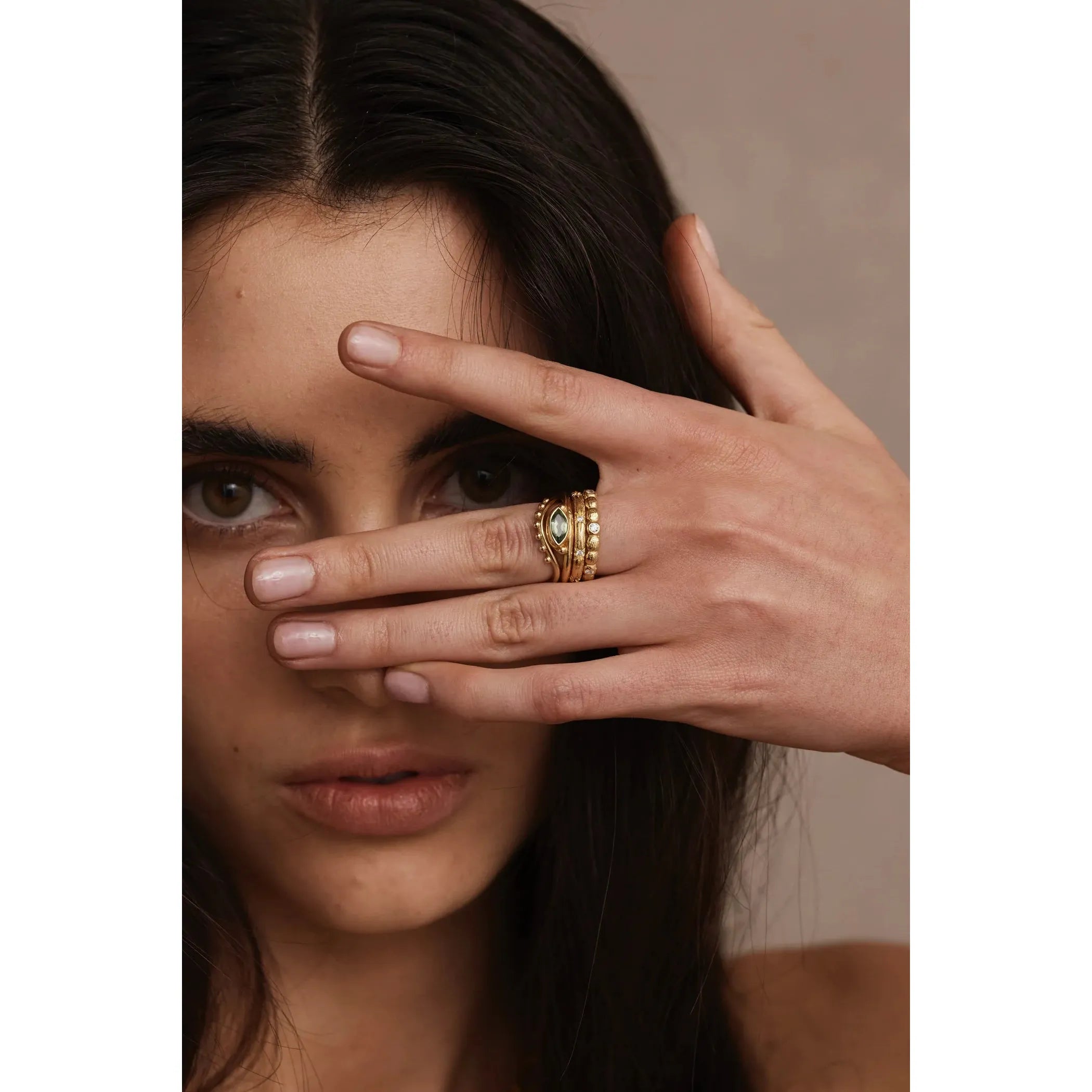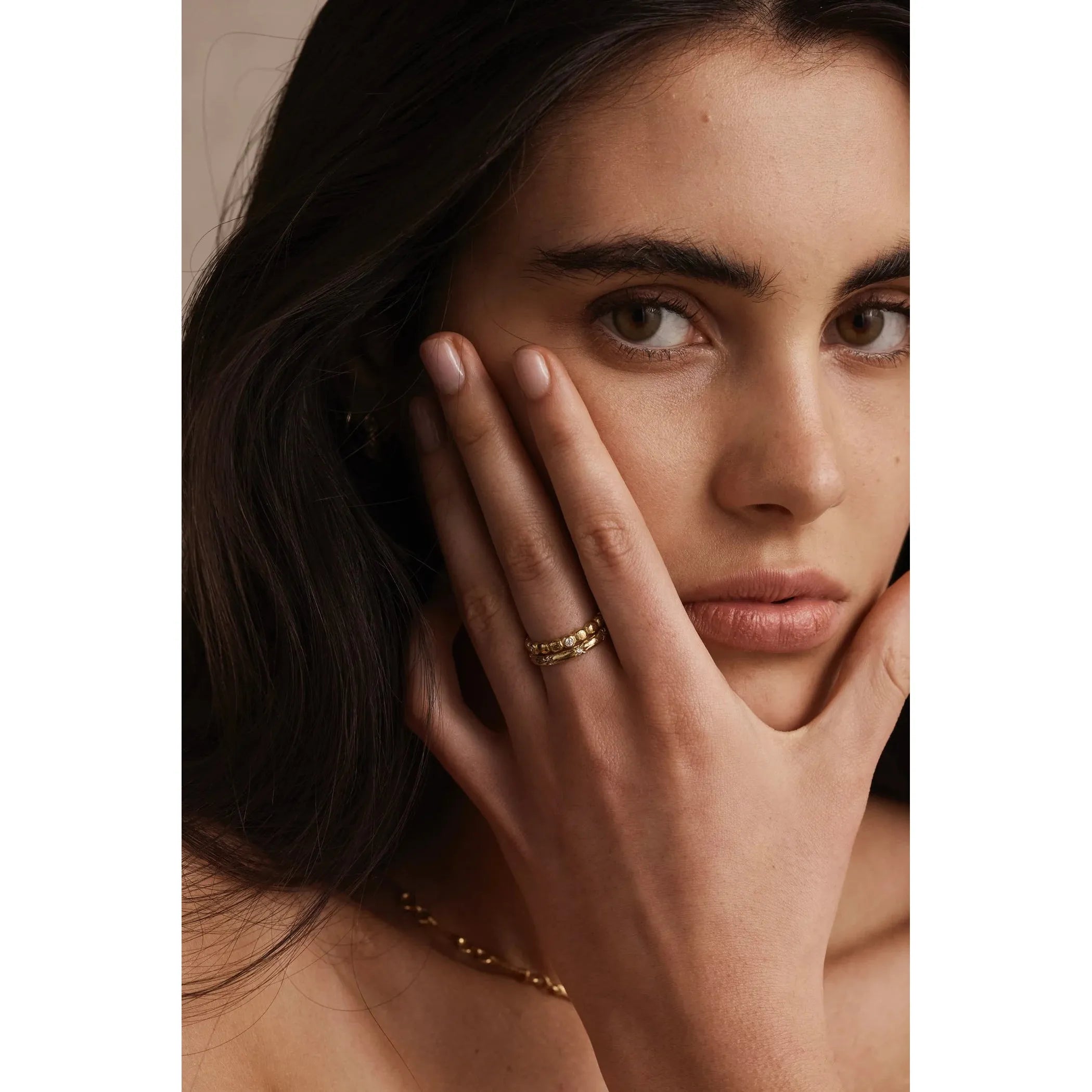 The Starburst Stacking Band features starbursts etched around the full diameter, each set with a glimmering Cubic Zirconia at its heart. Designed to mix, match, and layer with your favourites from our stacking range - wear it solo for subtle sparkle or build your dream stack around it
