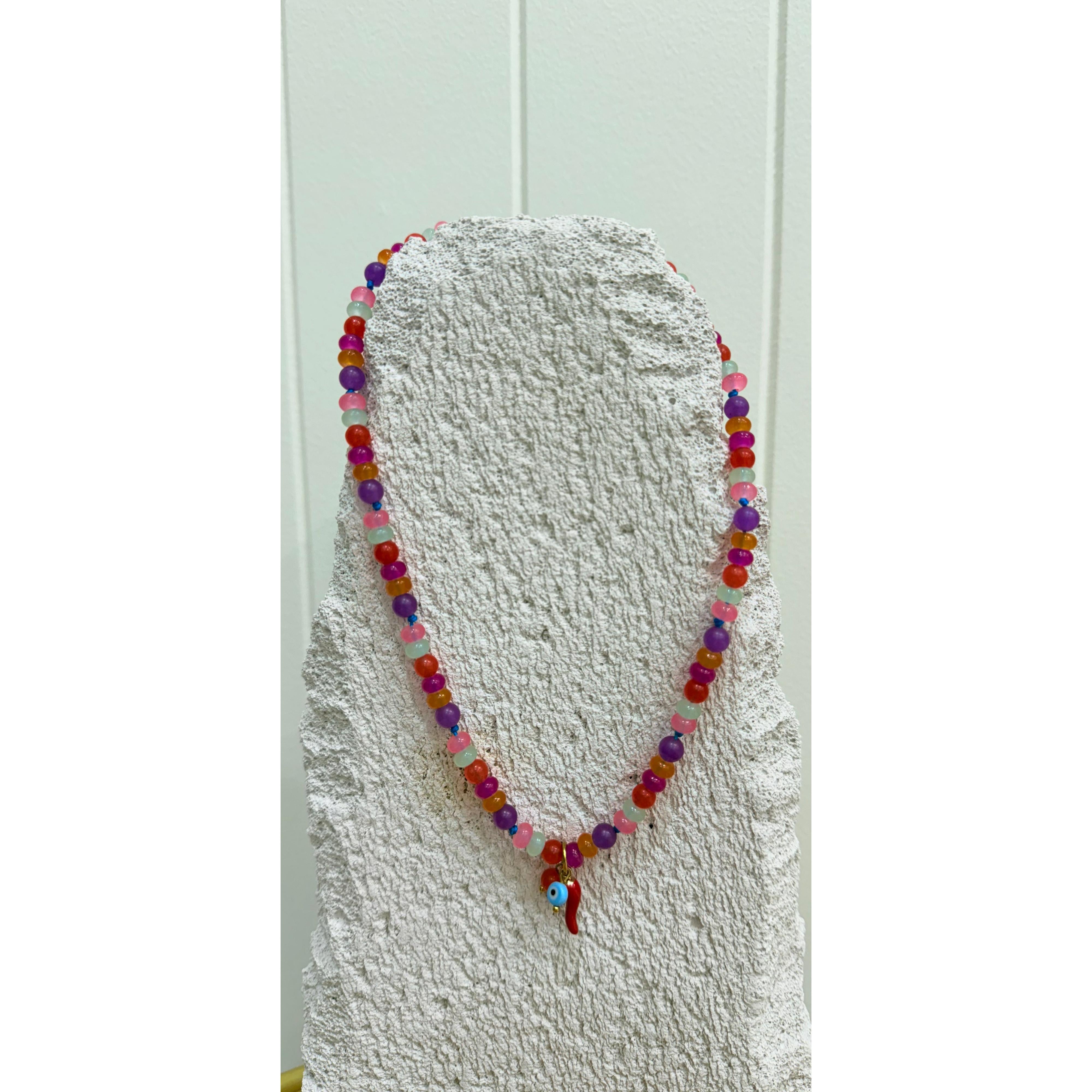 Turn up the heat with our Sweet Heat Necklace — a playful mix of purple, pink, and orange beads finished with a fiery chilli charm. Bold, sun-soaked, and a little bit cheeky.