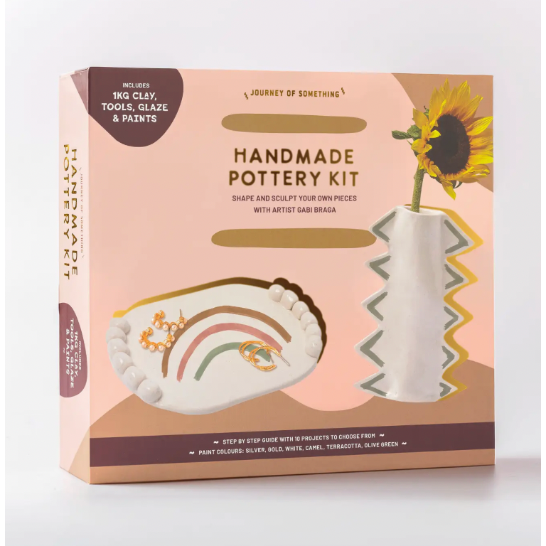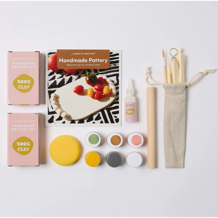 We challenged ourselves to create the best value, nicest looking pottery kit on the market. And BY GOLLY, we think we have done it! You get EVERYthing you need, and we mean EVERYTHING! Including a whopping 1kg of clay. Start your journey to becoming a master potter. We are so excited for you to experience the joy of handmade ceramics. Send us a mug when you are done!