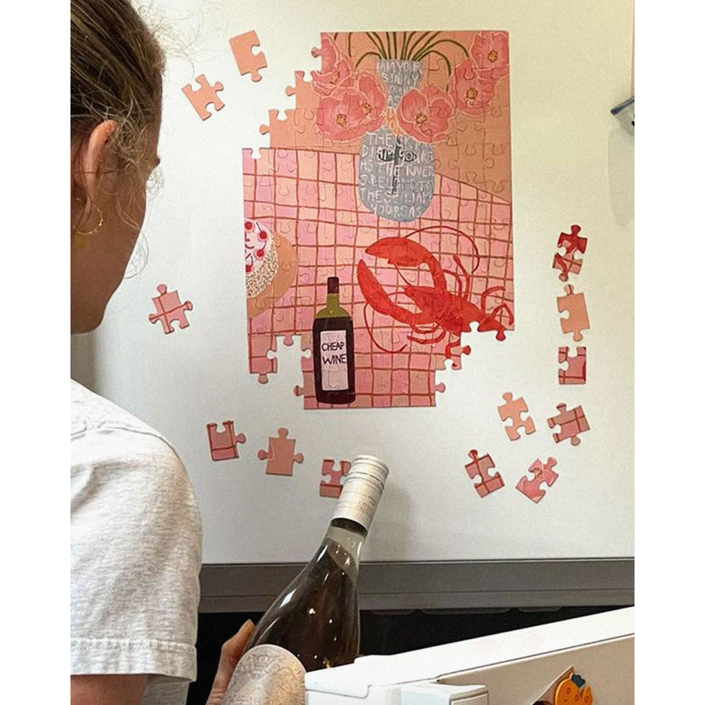 Keep this super cool, 100 piece magnetic jigsaw puzzle on your fridge or anywhere that holds magnets. Chip away at this unique magnetic jigsaw puzzle every time you need a snack (and by snacks we mean wine).