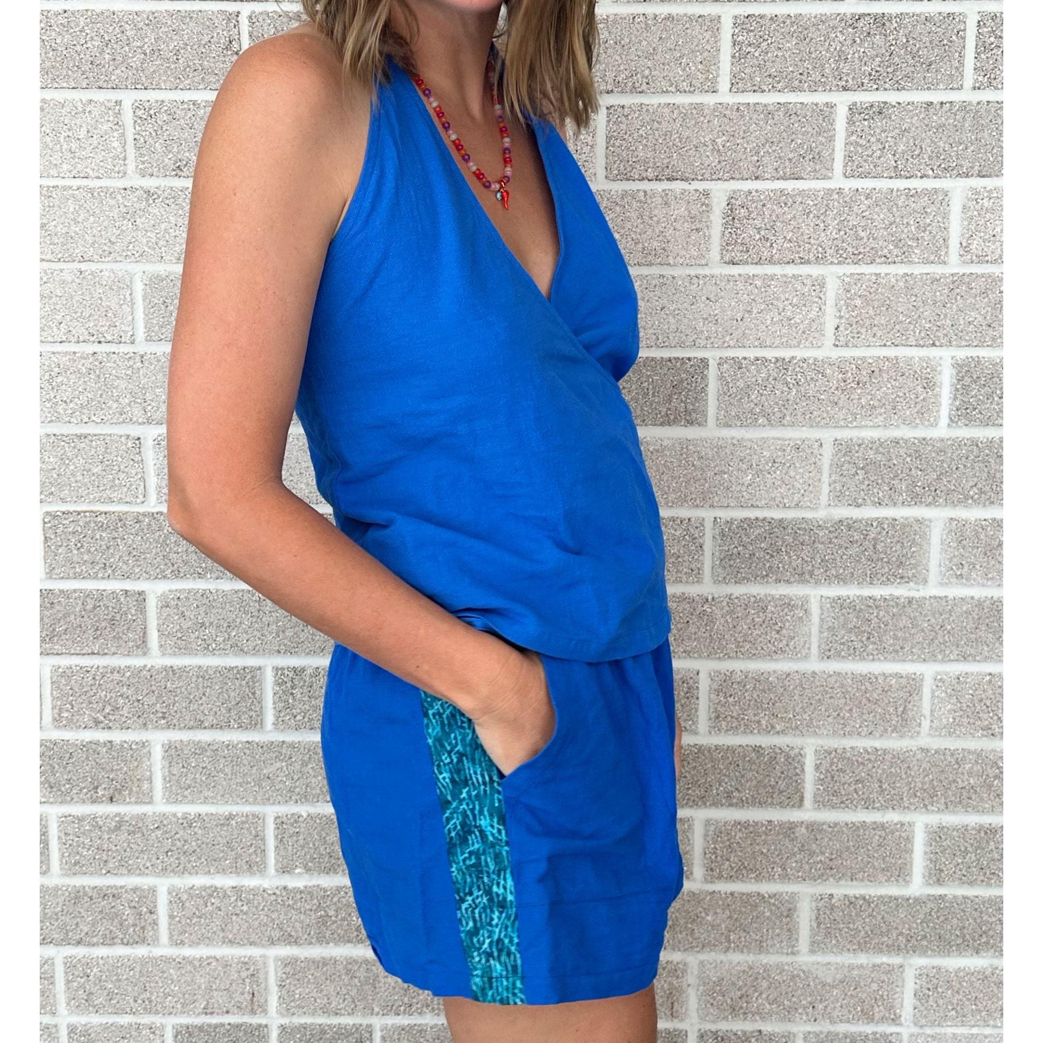 The Batik Racer Shorts are crafted from textured 100% cotton and finished with a bold turquoise batik stripe that gives classic lounge shorts an energetic edge. Cobalt blue gives them their attitude; the elastic waist makes them an easy, no-brainer staple. Comfy, breathable, and designed for movement. These are the shorts you’ll live in all season.