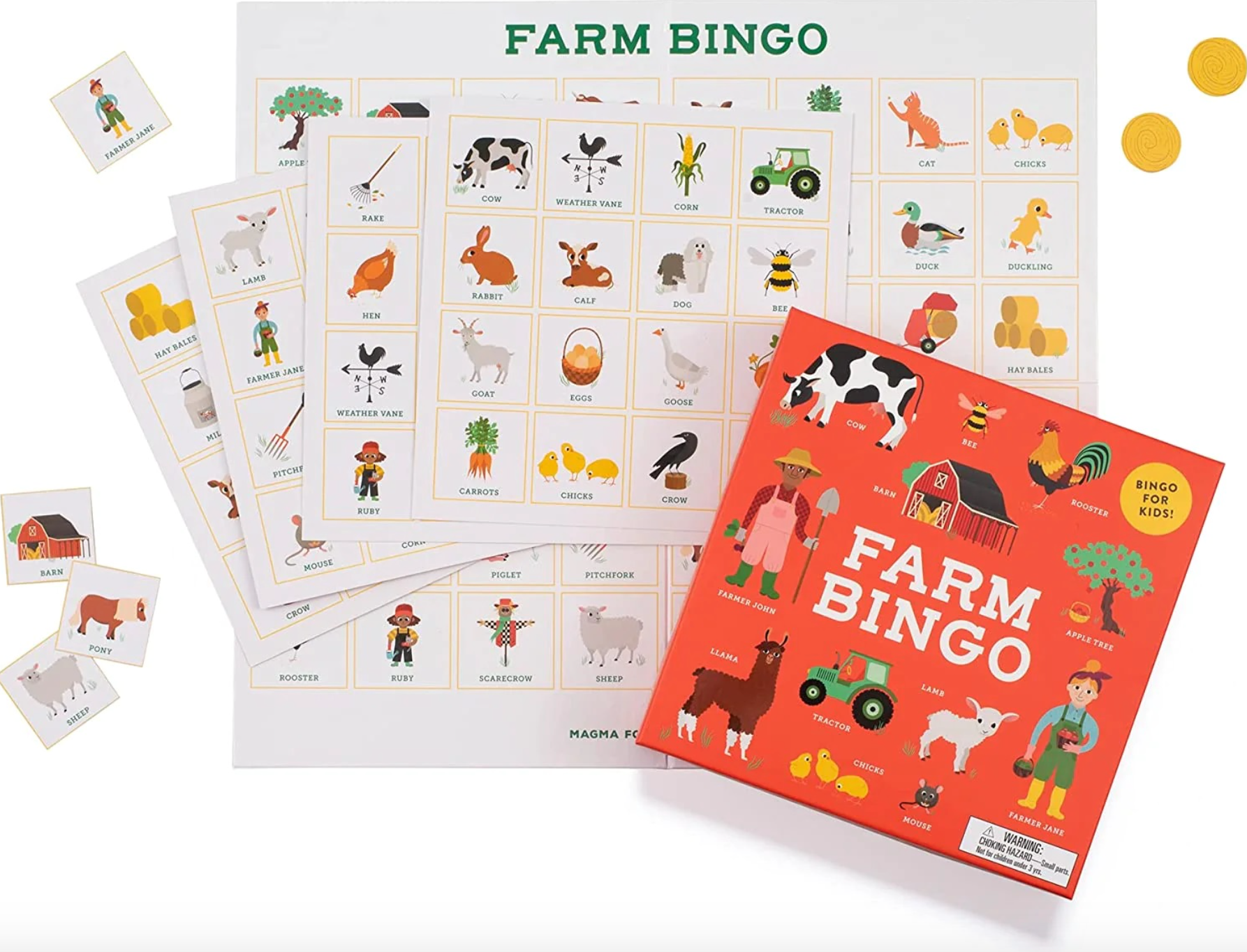 FUN FOR THE WHOLE FAMILY: Easy to play makes Farm Bingo suitable for the whole family, children 3+. Fill your game card first with all the farm favourites. From the farmer, the scarecrow and the tractor to the pigs, chickens, cows and ducks, along with classic crops like sunflowers, corn and pumpkins, Farm Bingo has it all!