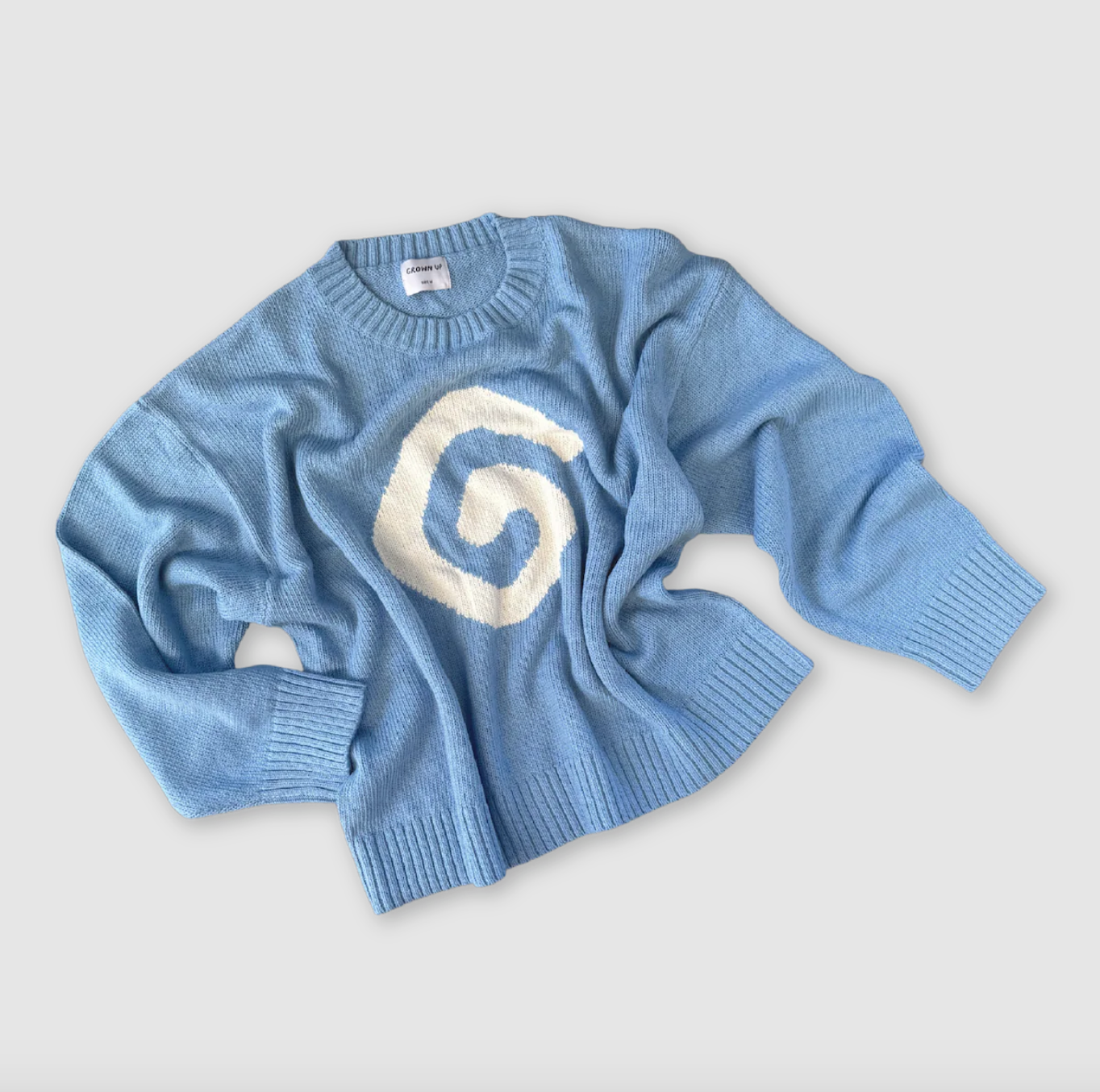 Ladies Organic Swirl Intarsia Knit Pull Over - Duck Egg