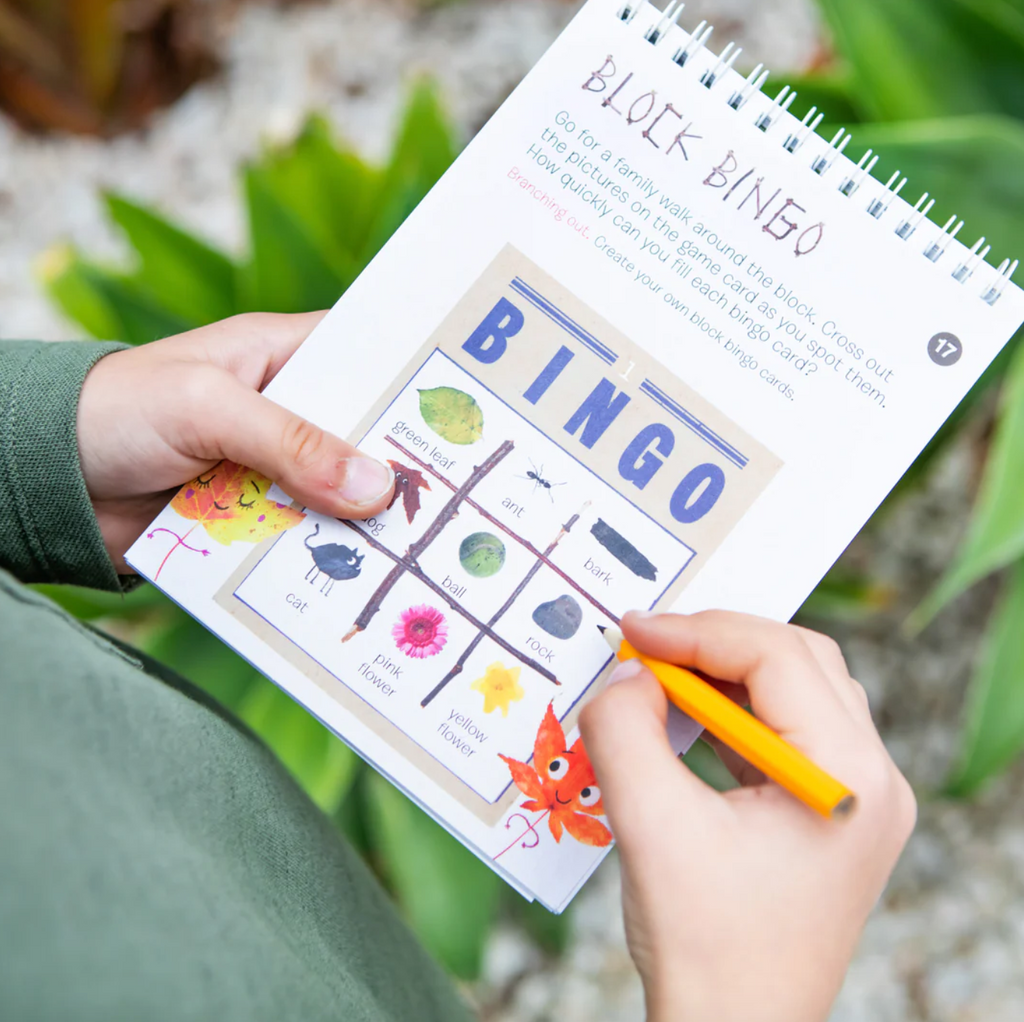 Designed to encourage observation and interaction with the environment, junior outdoor explorers can document cloud shapes, create mermaids out of found natural materials, complete kindness exercises, play backyard olympics or block bingo and a heap more.