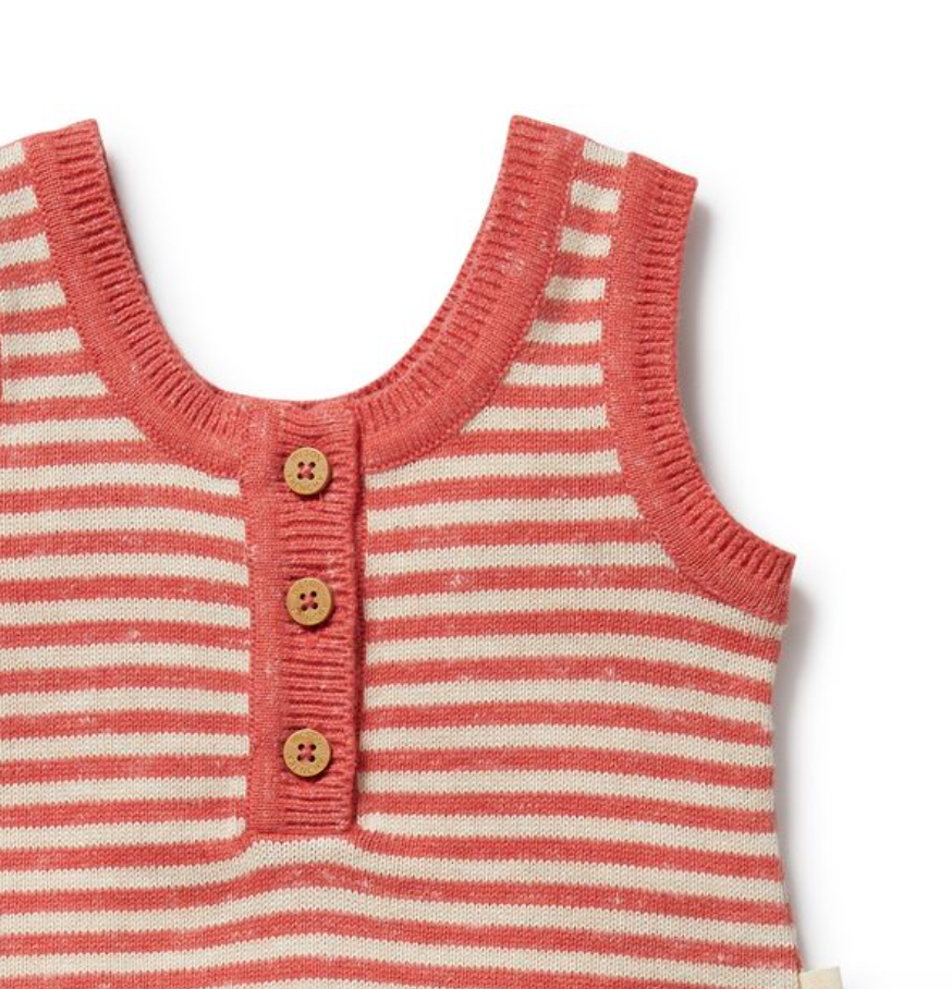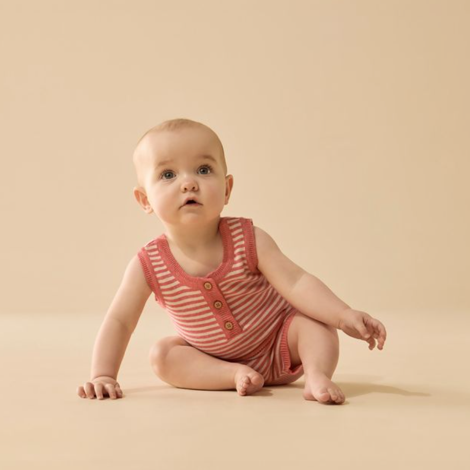 Wrap your little one in comfort and charm with our Strawberry Swirl organic knitted growsuit. Made from soft, breathable organic cotton, this cosy one-piece features a sweet stripe pattern in soft pink tones. Designed for all-day wear, it offers gentle stretch and a relaxed fit to keep baby comfy during naps, cuddles, and playtime. A perfect blend of style and practicality for your little love.