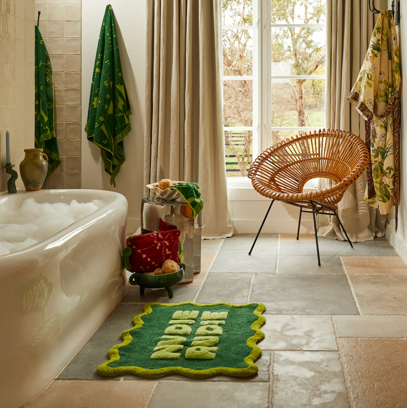Plant your feet each morning on our incredibly plush, super-absorbent, Nudie Rudie bath mat and start every day with a cheeky giggle. Hand-tufted by artisans, our Nudie Rudie bath mats are super special and iconically Sage x Clare.