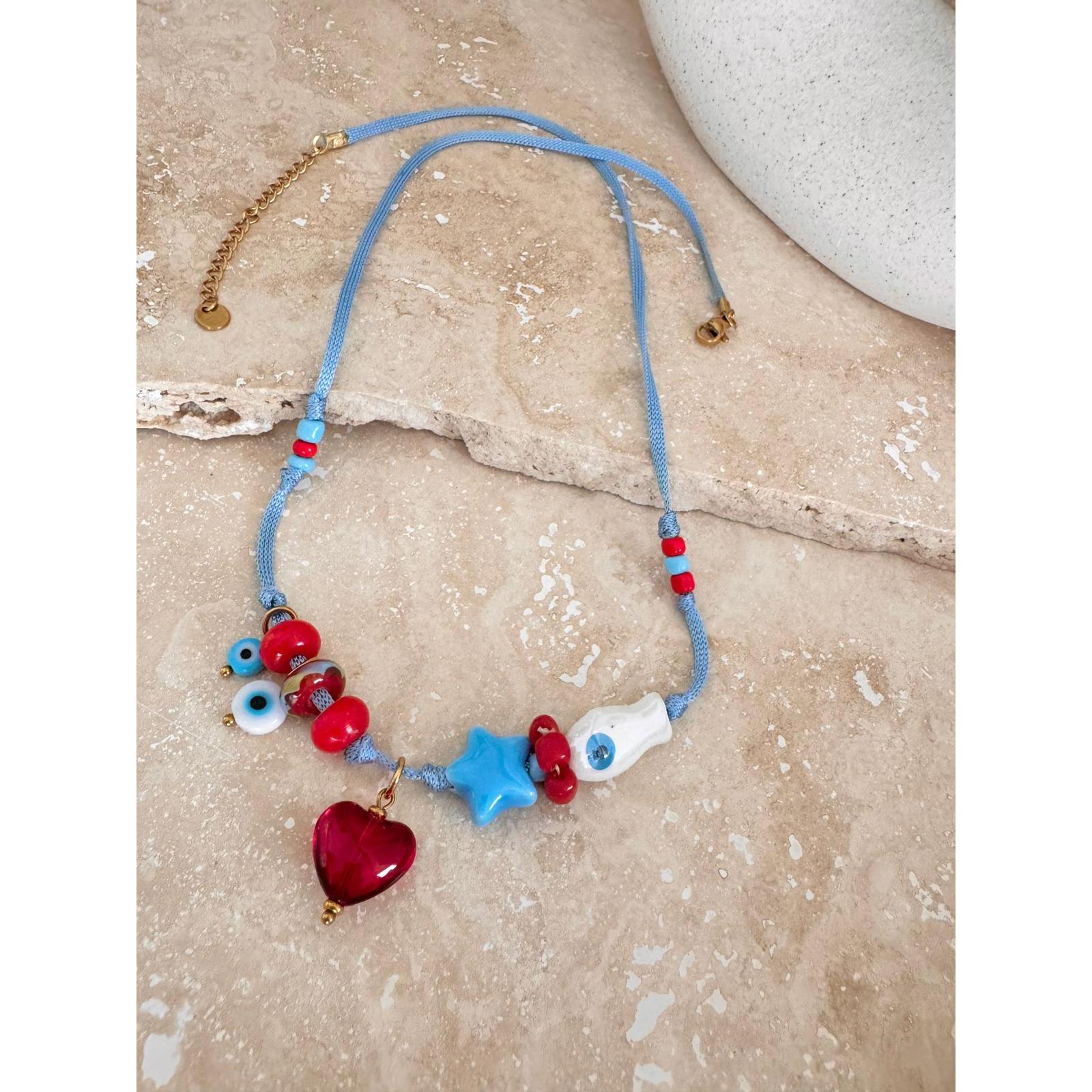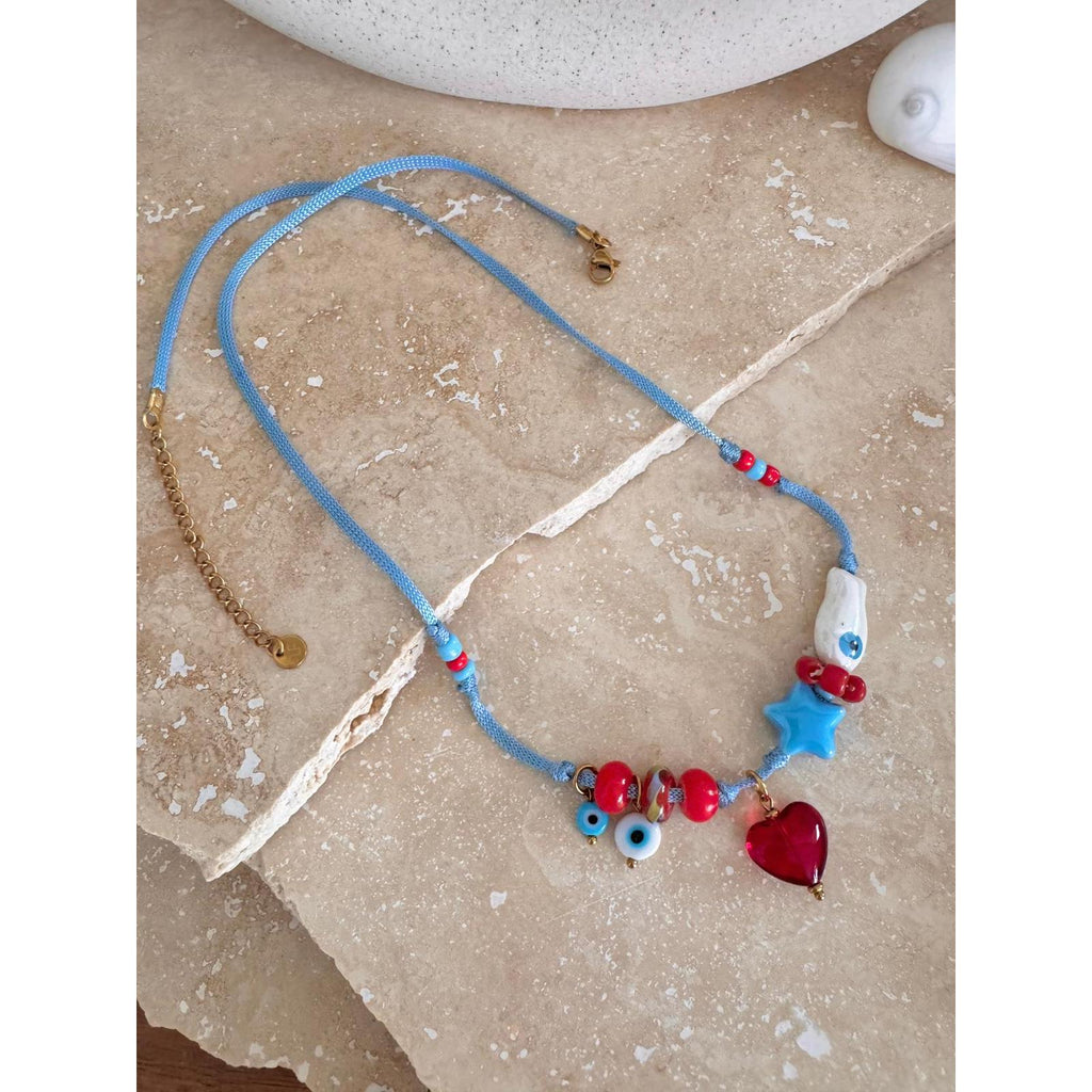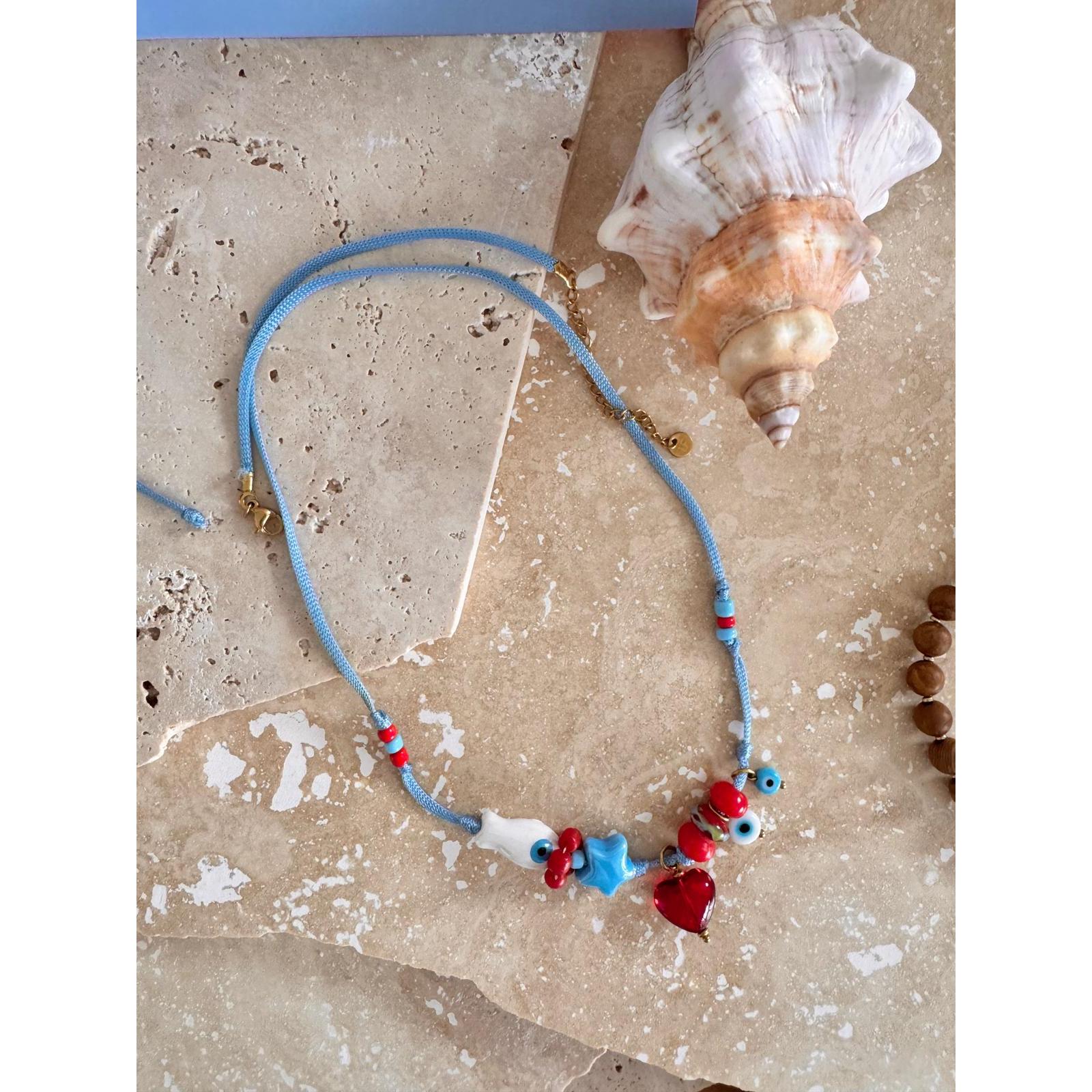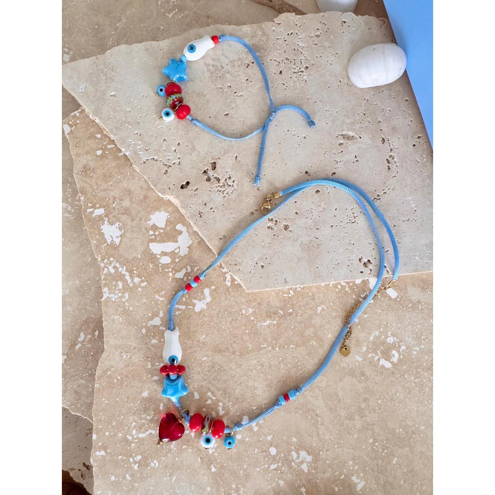 Turn up the summer fun with our Unserious Jewellery Range, designed to match perfectly with our Unserious tees. Bursting with personality, this vibrant jewellery duo features a playful mix of funky fish beads, chunky Greek-blue stars, and bright red accents that feel like sunshine, salt water and good energy.