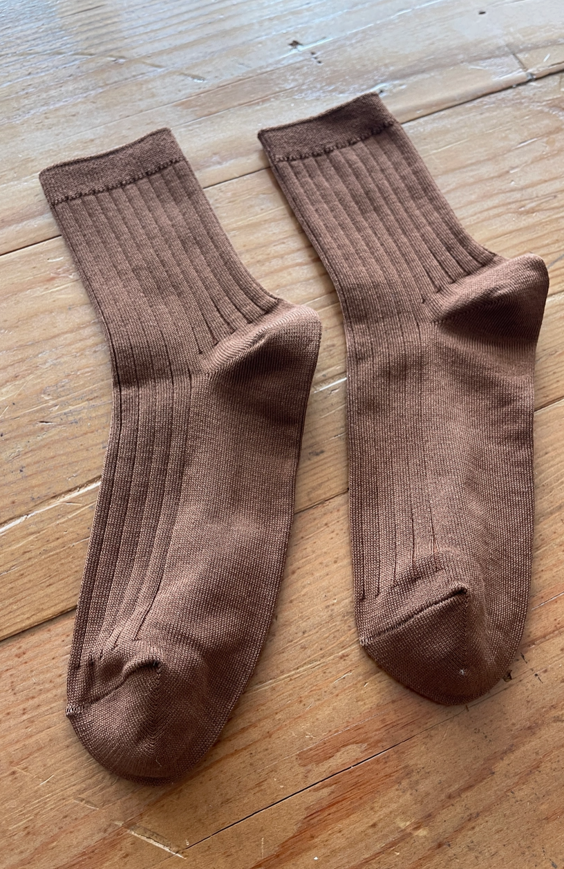 Her Socks - Mercerized Combed Cotton Rib - Coffee is backordered and will ship as soon as it is back in stock.