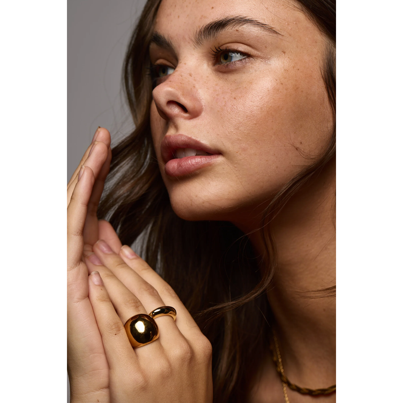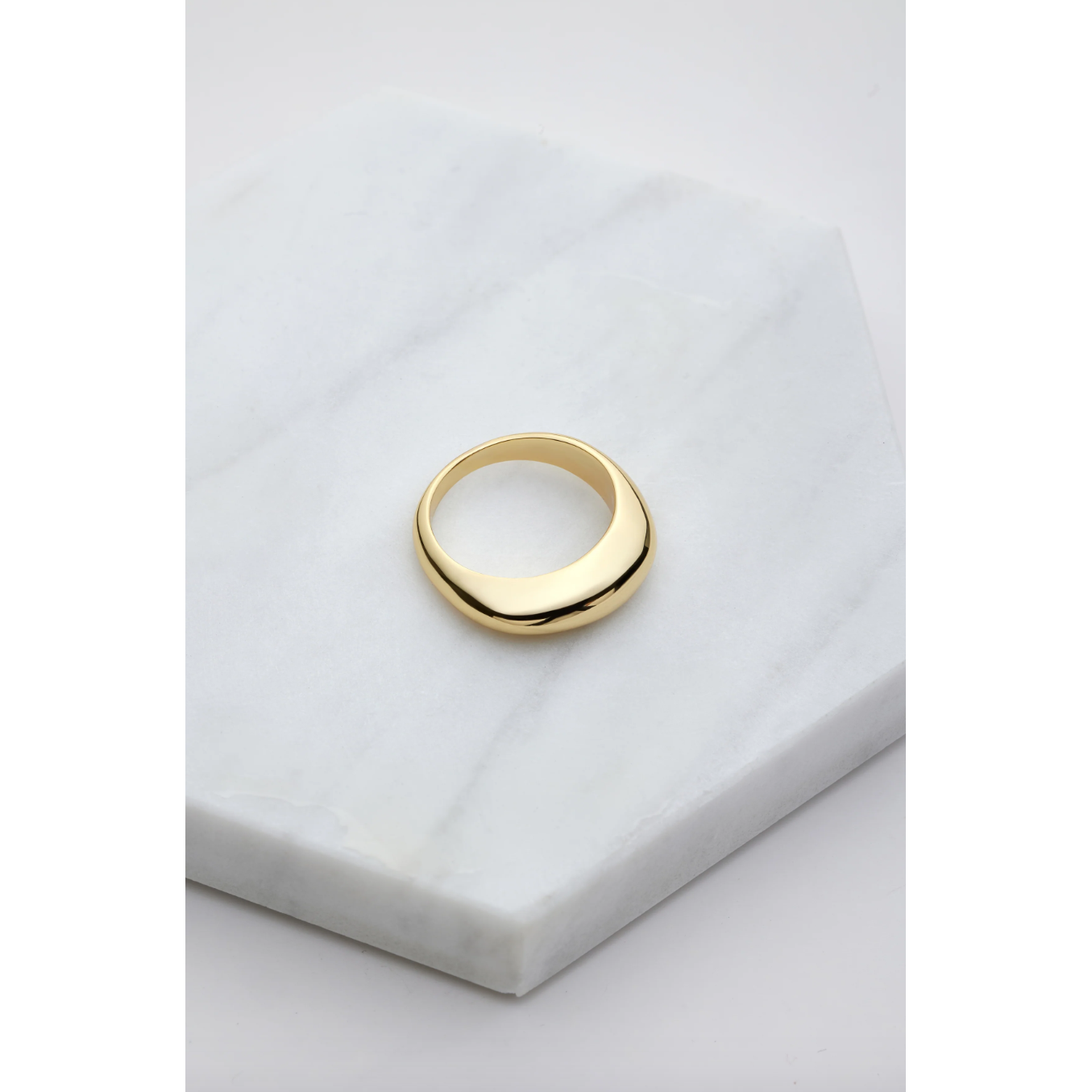 Introducing the Steph ring: a sleek and stylish accessory designed to elevate your look effortlessly. Crafted in gleaming gold, this ring exudes modern sophistication with its minimalist design.