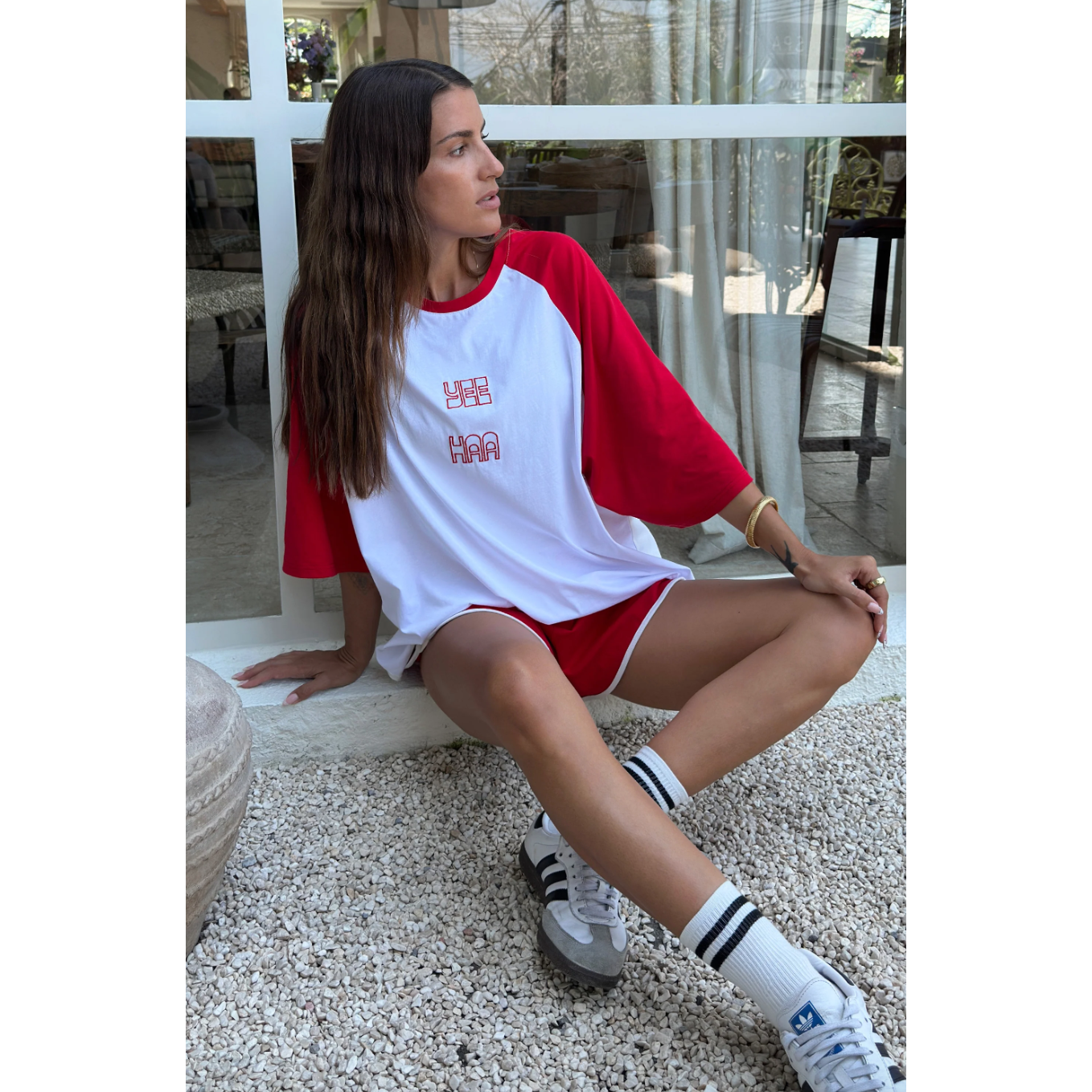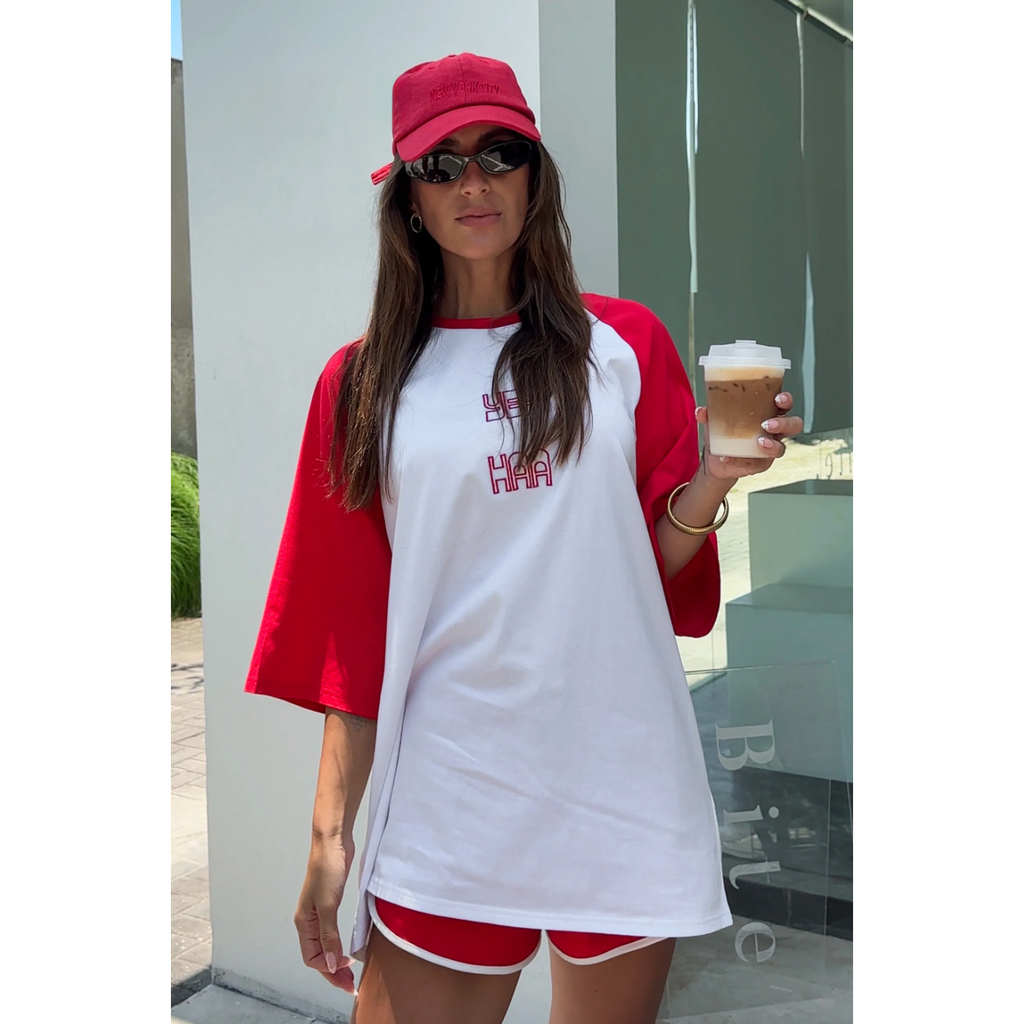 Your new favourite oversized tee with a fun pop of colour, introducing our YEE HAA Raglan 💥 100% cotton and the perfect oversized fit for both the lads and the ladies, featuring our signature logo piping on the arm.