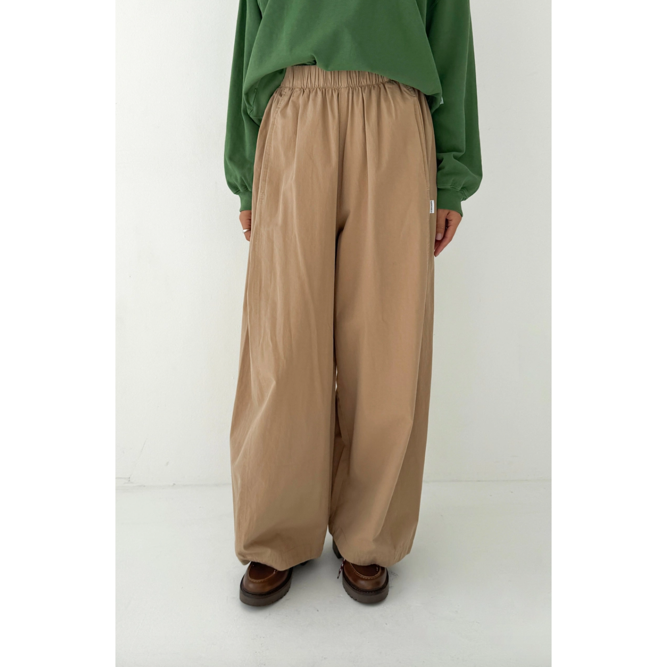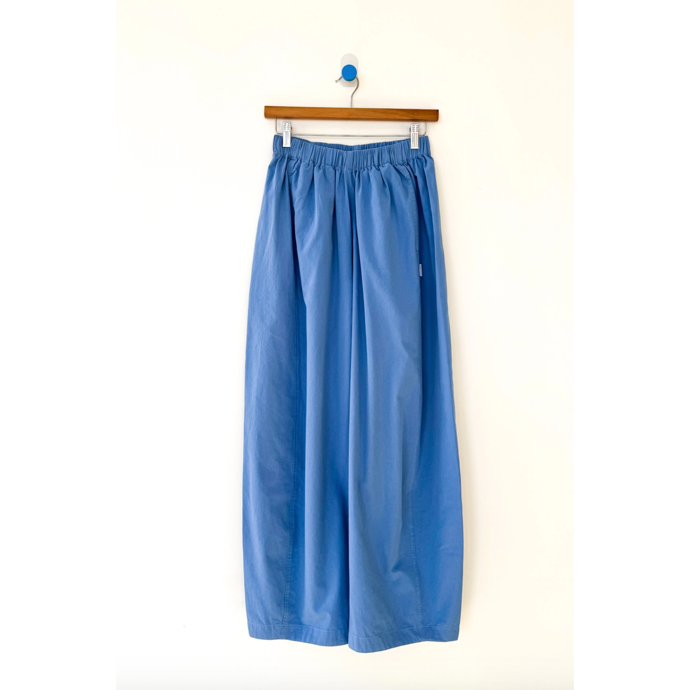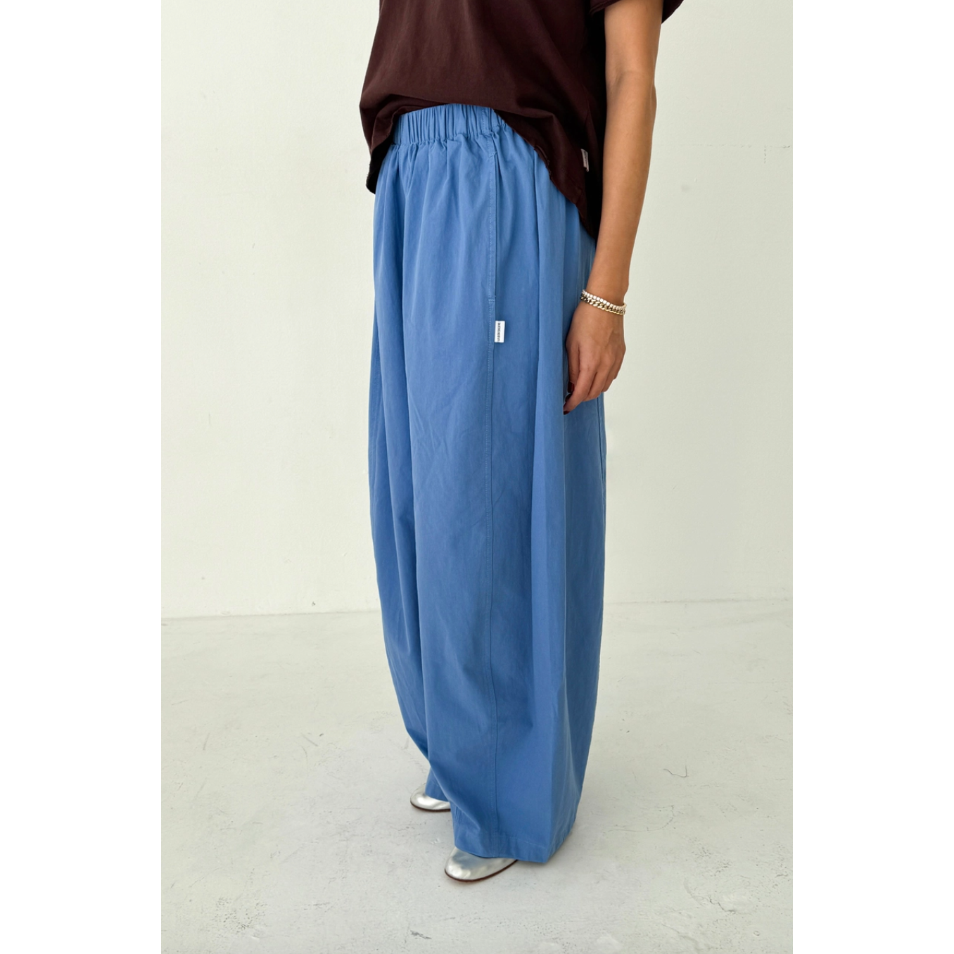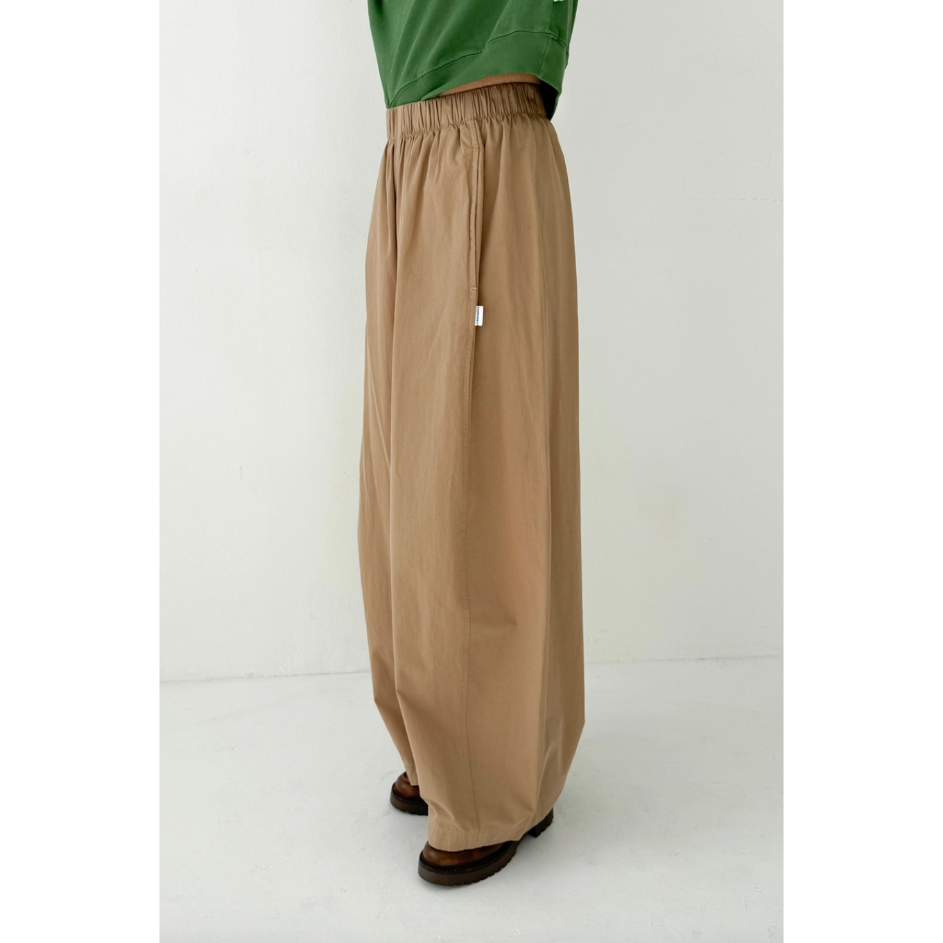 Billowy pants made to move with you throughout the day. Crafted from a light yet durable and elevated cotton they're the kind of pair you can wear anywhere, from casual moments to polished looks. Designed with an elastic waist and side pockets, their unique leg shape sets them apart. A third side panel adds extra volume, creating a sculptural silhouette that’s relaxed, airy, and full of movement.