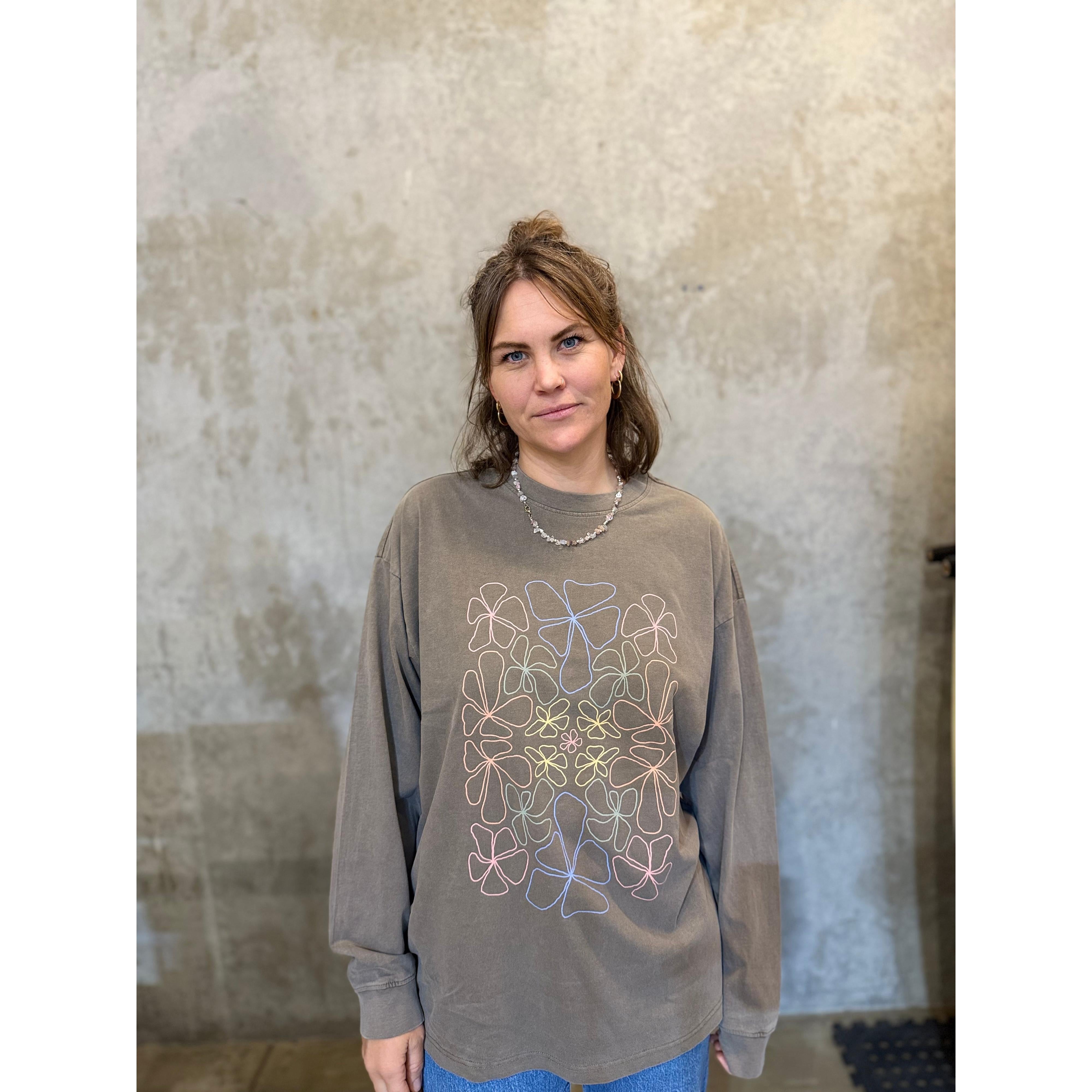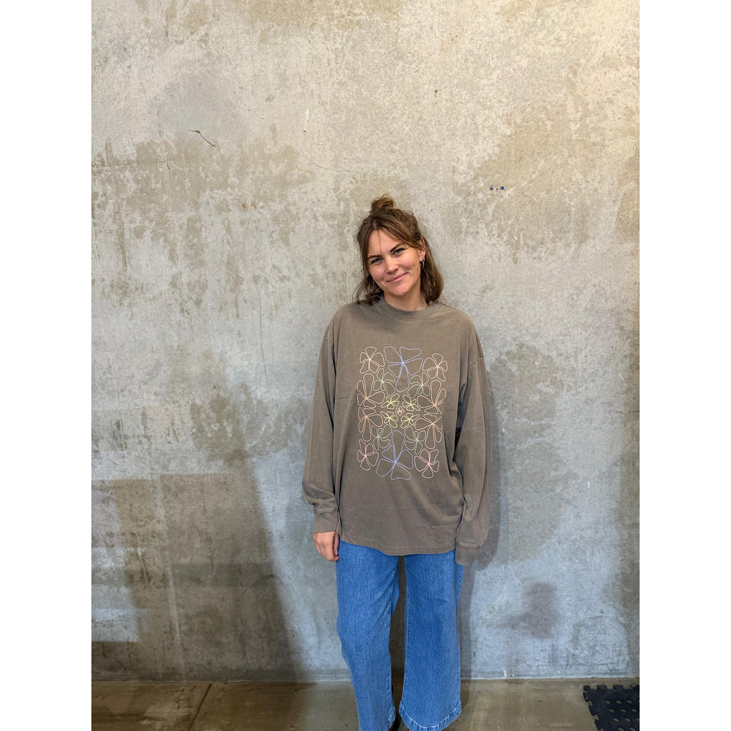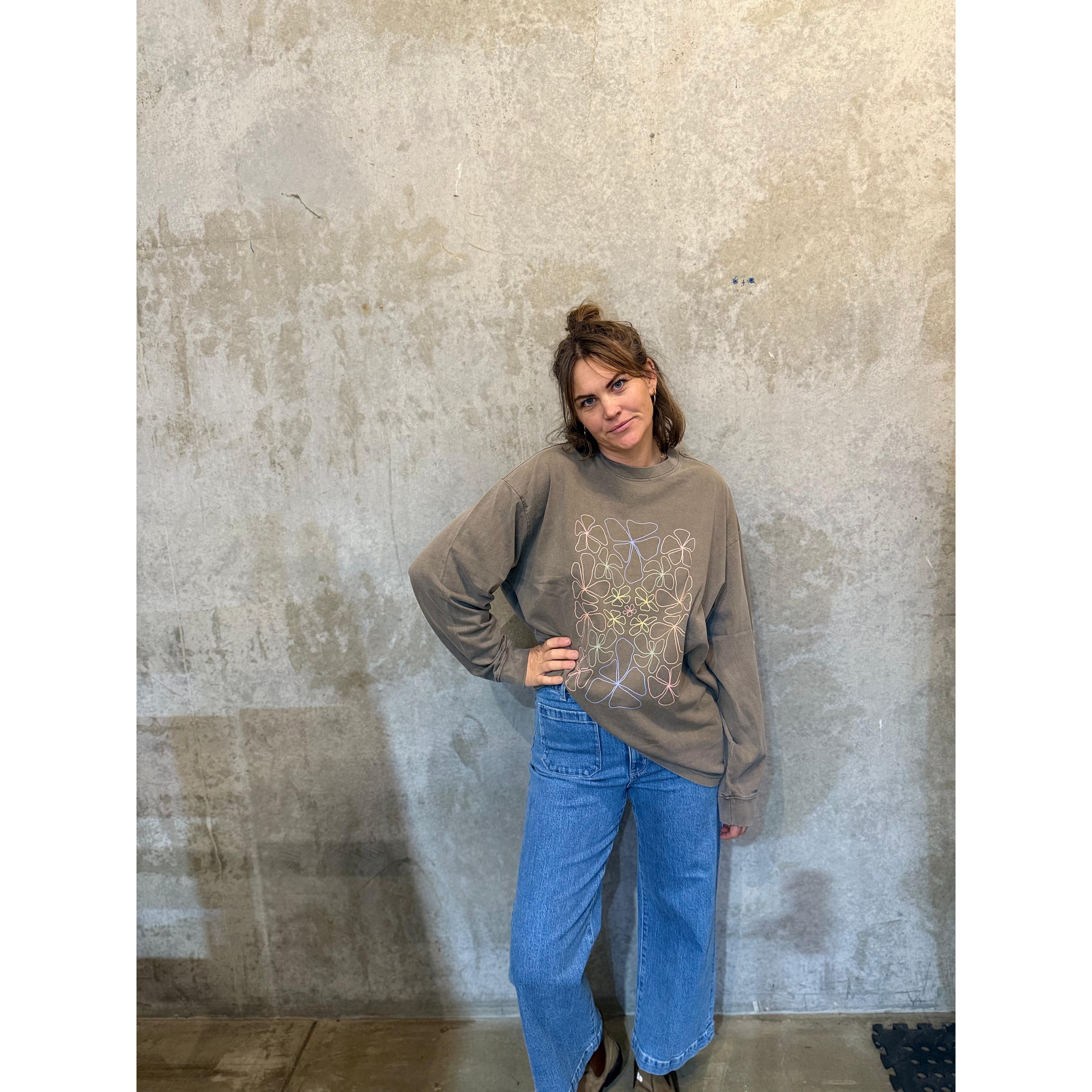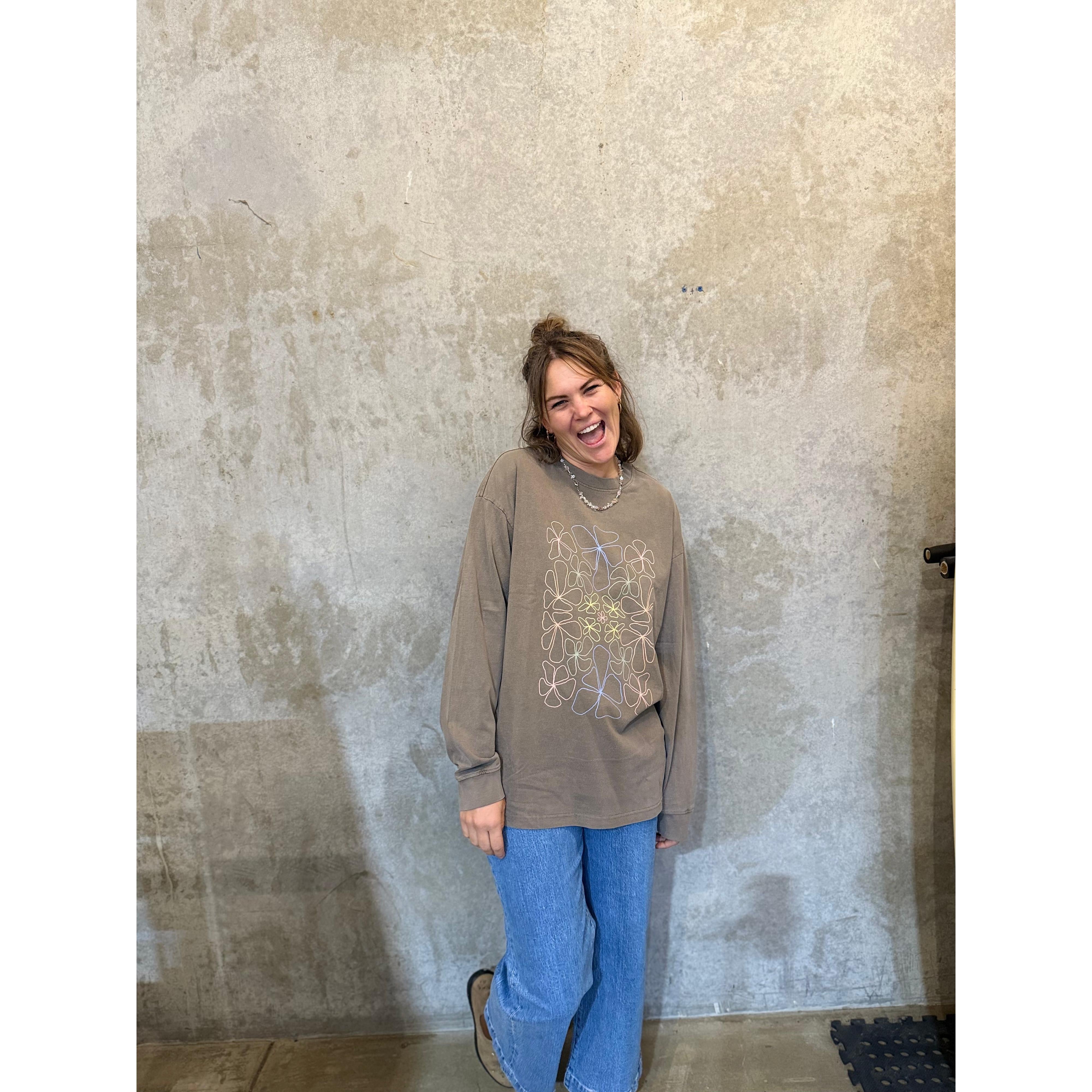 Step into mellow vibes with our Expansion Long Sleeve Tee. Featuring a hand drawn symmetrical, pastel floral linework design on a washed grey base, this shirt blends effortless style with a subtle retro edge. The relaxed fit, ribbed cuffs, and breathable cotton make it perfect for layering or wearing solo all year round.