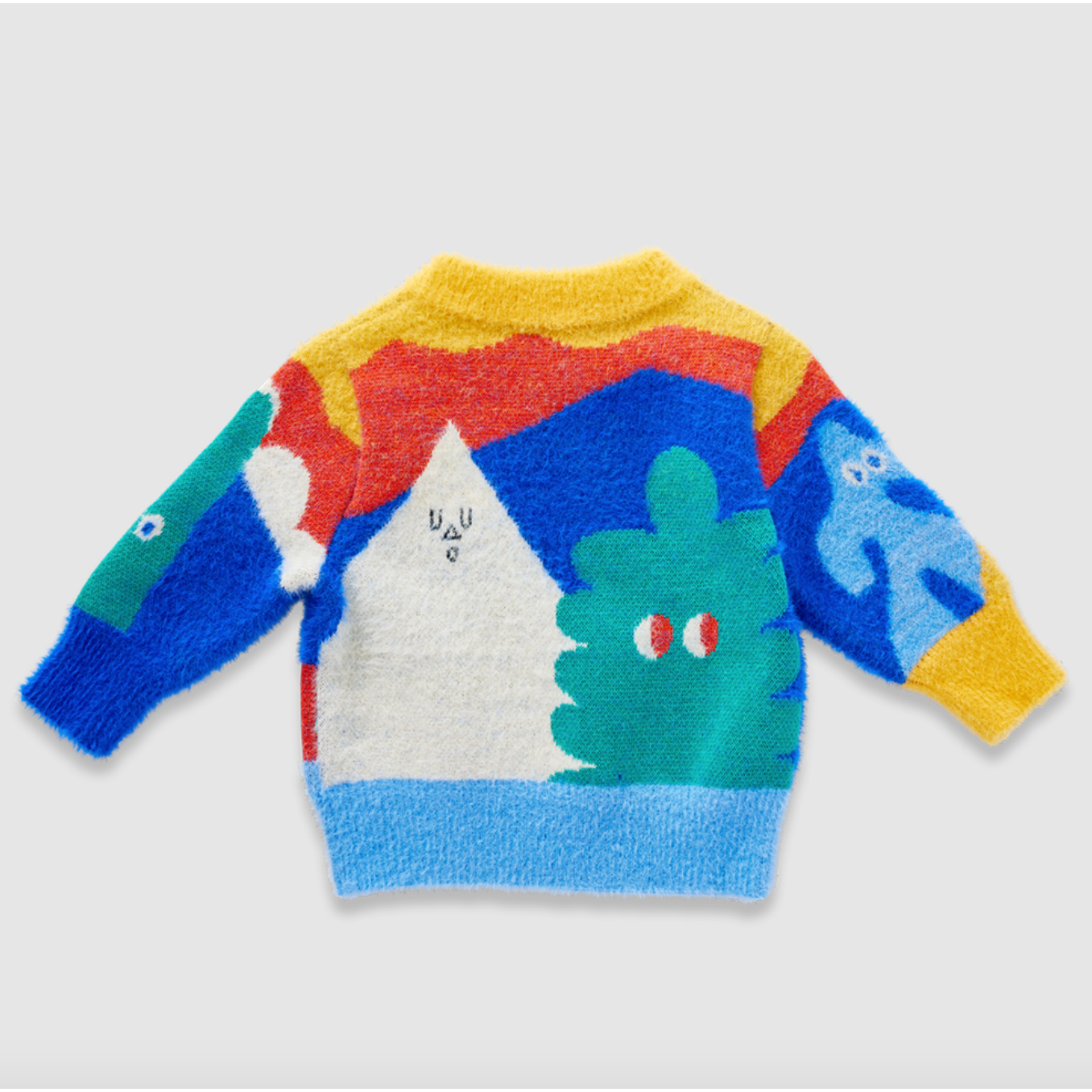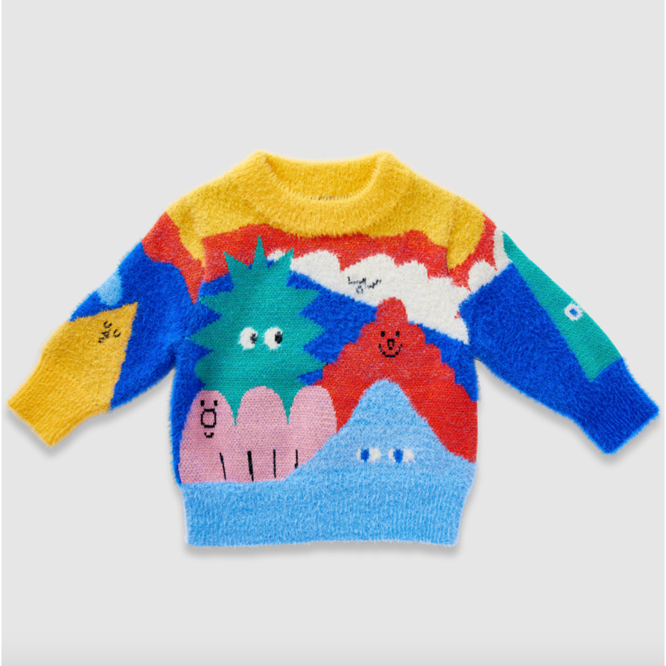 Features a crew neckline, subtle fluffy finish and picture knit design from our Mount Wiggly collection on both sides.